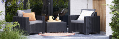 View full detailsThis Alfresco Outdoor dining set comes with 4 Bella chairs and 1 Quartet Table.Perfect for balcony/ Patio Areas! Bella Chair Grey Non-metallic fra...