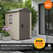 The Factor 4x6 shed is storage where you need it most: small spaces. This shed is constructed out of a weather-resistant resin with steel reinforcement, providing durability as well as giving your yard extra style with its excellent wood-like texture. The Factor 4x6 also has a heavy-duty floor panel, built-in ventilation, window and a secondary door that provides increased accessibility.