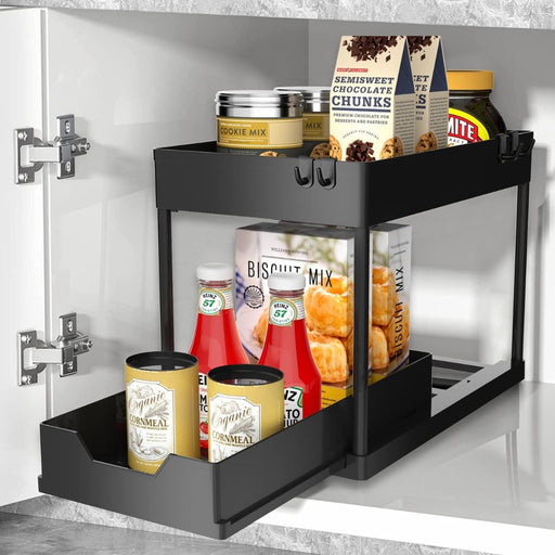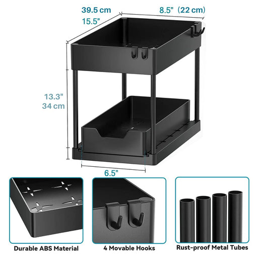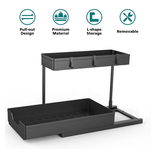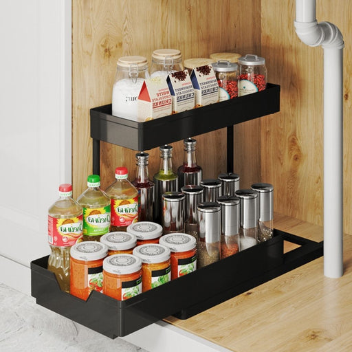 2 Tier Slide Out Multipurpose Organiser Rack Black