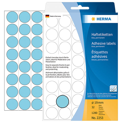 Office Pack Multi-purpose Labels Round 19mm Blue (2253)