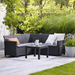 Make the most out of each corner in your garden or balcony with this Marie 5-seater corner sofa set. Gather around and make the most out of those summer evenings. The ergonomically designed seats and included cushions are for ultimate relaxation. With the round arms and ergonomic backrest the Marie corner set has a soft and friendly look. Built using sustainable, low-maintenance and weatherproof materials. Seat cushions are included. Features a sturdy base that provides optimal stability.