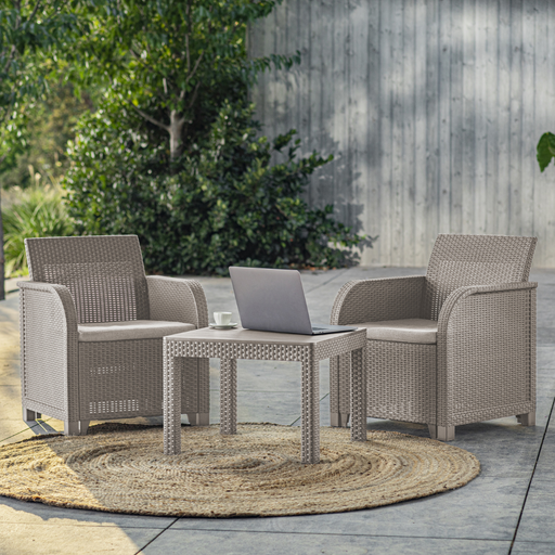 AllibertOriginal price $610.00 - Original price $645.00Original price $610.00 - Original price $645.00Original price $610.00$399.00 - $434.00$399.00 - $434.00Current price $399.00| /Only 1 left!Relax in style with this 2-seater rattan-effect bistro set. Sturdy seatbacks and armrests are paired with thick cream cushions for comfort and dura...