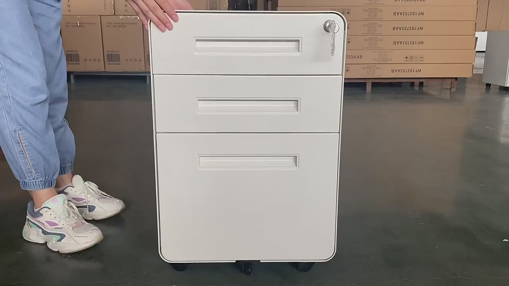 Designed for modern workspaces and office, the Filex 3 Drawer Mobile Pedestal Cabinet Round Corner offers a perfect balance of security, mobility and organization. Crafted from durable steel with a smooth white powder-coated finish, this cabinet delivers a professional, sleek aesthetic while ensuring your documents and office essentials are safely stored. With smooth-gliding drawers and durable construction, and easy mobility, it’s perfect for organizing files, supplies, or personal items. Its compact design fits under desks, while the lockable drawers keeps valuables secure.