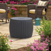 This is a unique circular design, multi-purpose round deck box, strong and durable panels, no peculiar smell, handle concave convex makes the deck to convenient to carry.